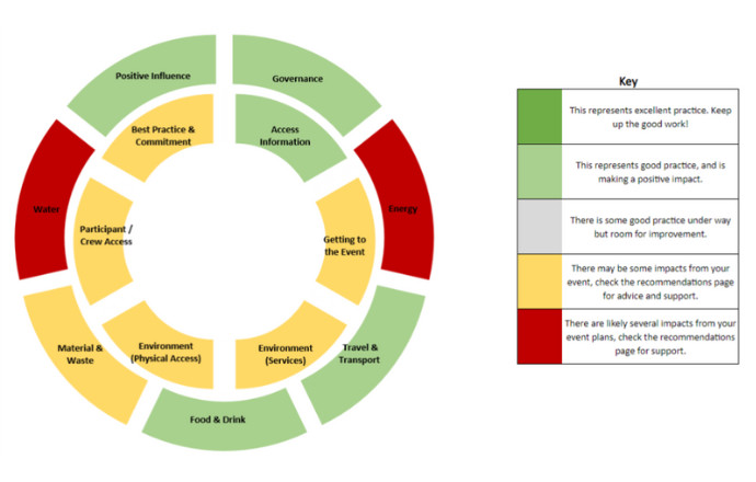 - Materials & Waste – to improve on our materials and waste we'd need a plan to reduce waste and increase recycling at our event and we'd need to understand if the venue separates food waste for composting.
