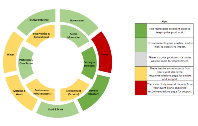 We're down to one red area which means we're taking steps in the right direction. As outlined above, this is always going to be a tricky area for us. However, with better discussions with our venue, we can understand whether it is possible to measure energy usage during the conference. Once we've got this base line data, in future years, we can work on whether it will be possible to reduce energy consumption. This should hopefully put us on track to improving the one area of red on our toolkit.
