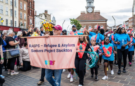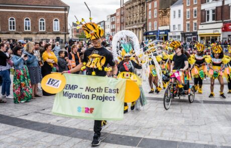 Image Credits: Community Carnival at Stockton International Riverside Festival 2024 (featuring North East Migration Project and Refugee and Asylum Seekers Project Stockton); Nutkhut's giant Bride and Groom puppets at Bula Festival; cover image for The State of The Arts report by Campaign for the Arts and Warwick University.
