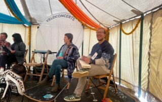 Our General Manager David chaired an afternoon panel session at the Climate Café, located right by the sea at the Beach of Dreams Village, with our Co-Chair Lorna Rees joining the panel alongside other contributors. This space offered opportunities for attendees to share ideas and reflections on climate change and the role of the arts in addressing environmental challenges. David's facilitation helped guide meaningful discussions on how Outdoor Arts practitioners can foster climate awareness, resilience, and action.