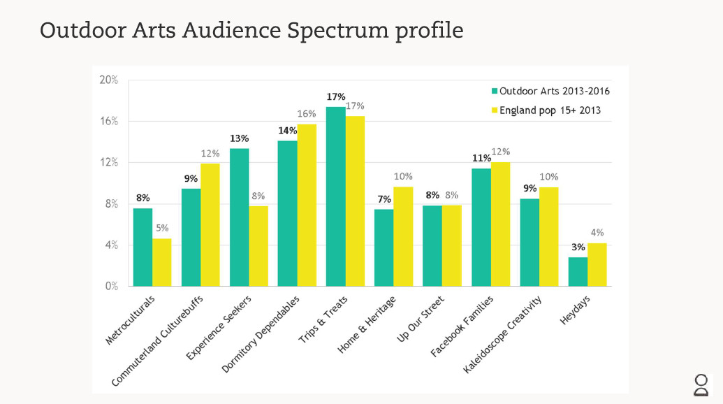 Despite this, the Audience Agency has built an effective way of data capturing, and has collected one of the most extensive datasets in the UK to understand who attends outdoor arts and why.