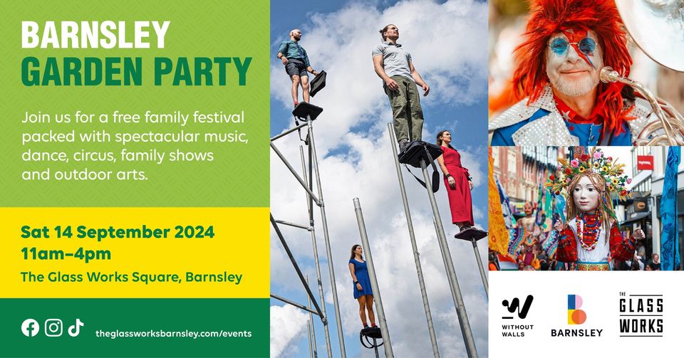 The Glass Works are thrilled to bring back the Barnsley Garden Party on Saturday, 14th September, from 11 am to 4 pm. This vibrant festival will transform Barnsley town centre into a hub of creativity, with spectacular music, dance, circus acts, and family-friendly performances that promise to enchant visitors of all ages. Set in the lively Glass Works Square and the beautifully restored Barnsley Civic, this event is the perfect way to experience the very best of outdoor arts.