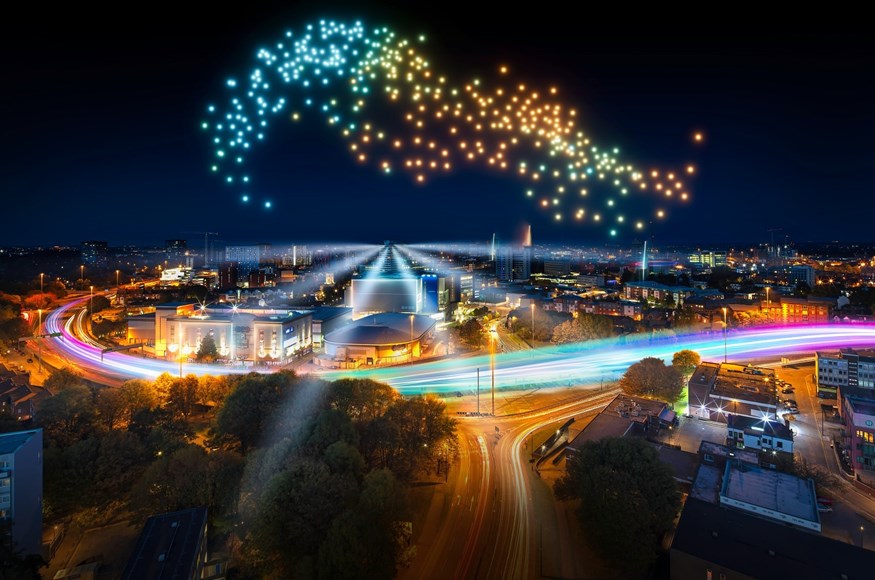 A spectacular 16-min drone show inspired by the movements of flocks of birds, will take to the skies above the city on Sunday 15 May at 9.10pm at War Memorial Park and online.