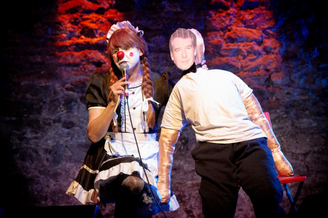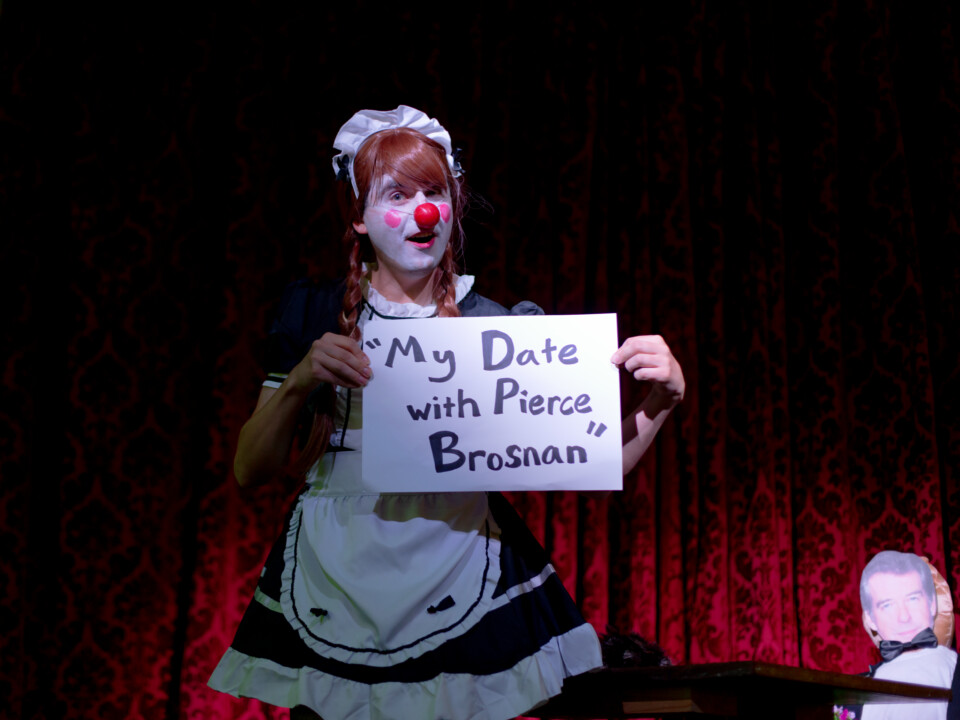 His most recent production, My Date with Pierce Brosnan, sees him perform as a clown in an improvised show powered by mobile technology. Audiences submit secret messages on their phones, which are voiced aloud by the titular celebrity: a talking dummy on a date with our lovestruck protagonist.