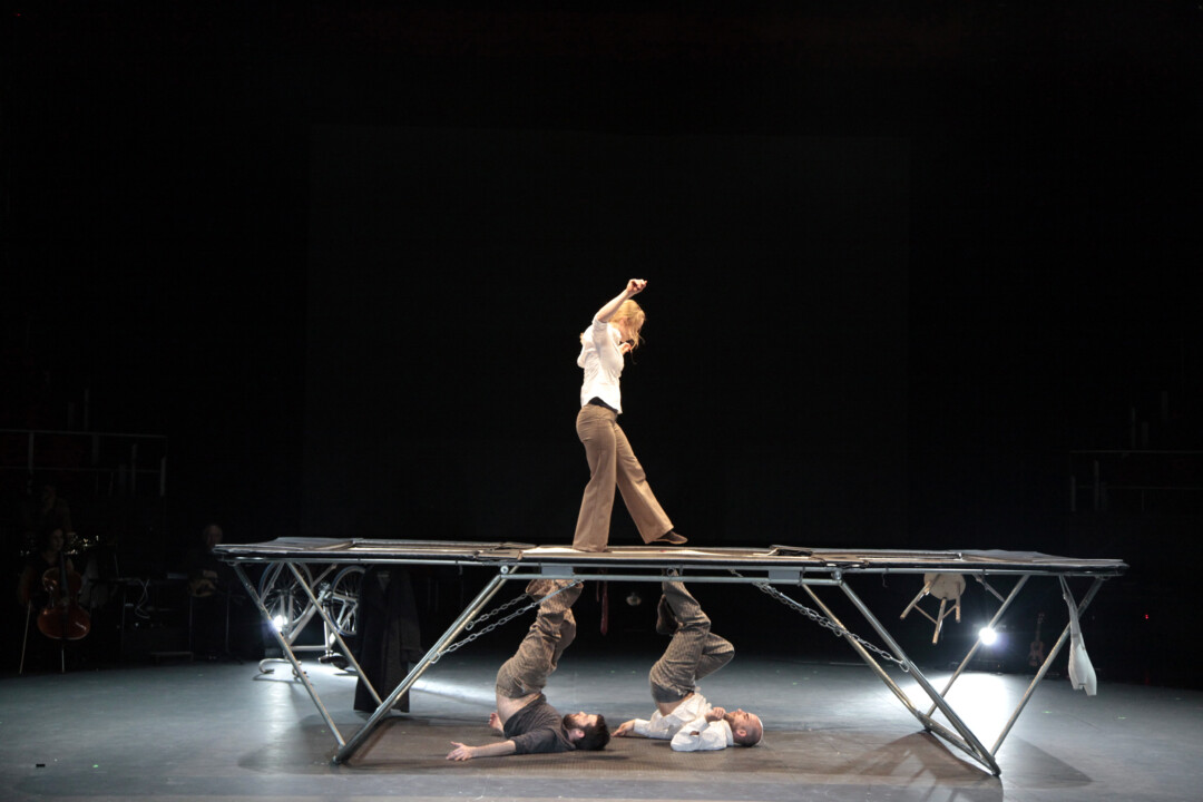 At the heart of the company’s creations is the trampoline — a vibrant emotional canvas. It offers a unique physical vocabulary to dive into the intimate, echo the fragile, drift along the edge, and propel the audience into unknown and imaginative landscapes.