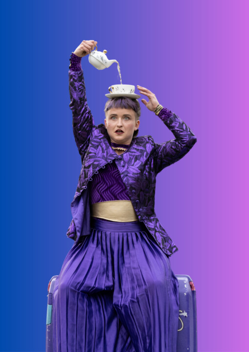 Step into a world of sparkle, strength & laughter! Dressed in a dazzling purple suit, Purple Punch invites you into her playful universe where teacups become acts of trust and strangers become the stars of the show.