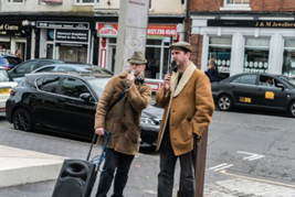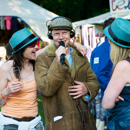 The Commentators have brought their undying passion for words and life to an eclectic range of events and locations including outdoor festivals, the World Gurning Championships, the opening of the Library of Birmingham, school sports days, a New York theatre foyer and Birmingham Royal Ballet’s performance of ‘The Nutcracker’. They are regulars at Moseley Folk Festival. Their hallmark is their ability to keep talking with undimmed enthusiasm for long periods of time including commentating on a 24 hour ‘Scalextric’ race, and on 12 hours in the life of Broad Street in Birmingham. They always find people and life fascinating and always have something to say.