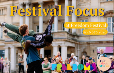Festival Focus is OutdoorArtsUK’s professional development opportunity to attend an Outdoor Arts festival as part of a small cohort. Apply to join us at Freedom Festival, Fri 4 Sep – Sun 6 Sep. Festival Focus offers Read More >