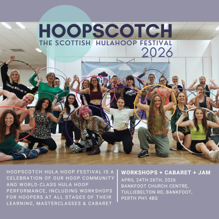 HoopScotch, our annual festival, invites professionals, hobbyists and beginners to come together to celebrate all things hula hoop. Masterclasses cover a variety of specialist hula hoop styles each year and feature exceptional artists from across the UK and Europe.