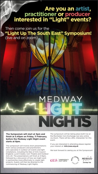 The Symposium will start at 3.00pm and finish at 5.45pm on Friday the 11th February, before the Medway Light Night event starts at 6pm.