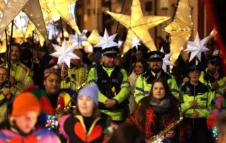 Lantern parade marks reopening of Liverpool library destroyed in summer riots